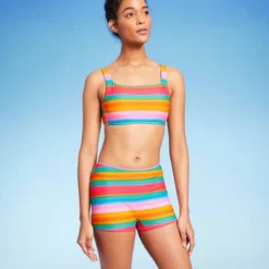 WoWomen’s Mid-Waist Shortie Bikini Bottom – Wild Fable™ Multi Striped