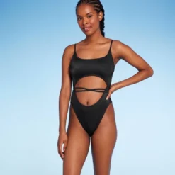 Women’s Wrap Cut Out Cheeky One Piece Swimsuit – Wild Fable⢠Black