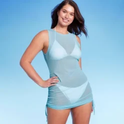 Women’s Mesh Drawstring Ruched Sleeveless Cover Up Dress – Wild Fable™