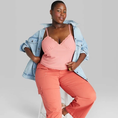 Sleeveless mesh tank top from Wild Fable™ designed with an at-waist length. Made from lightweight fabric with spandex for all-day comfort. Spaghetti straps and V-neckline finish off the chic, flattering look.